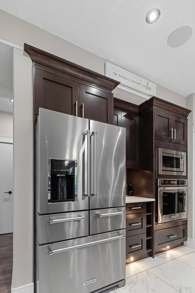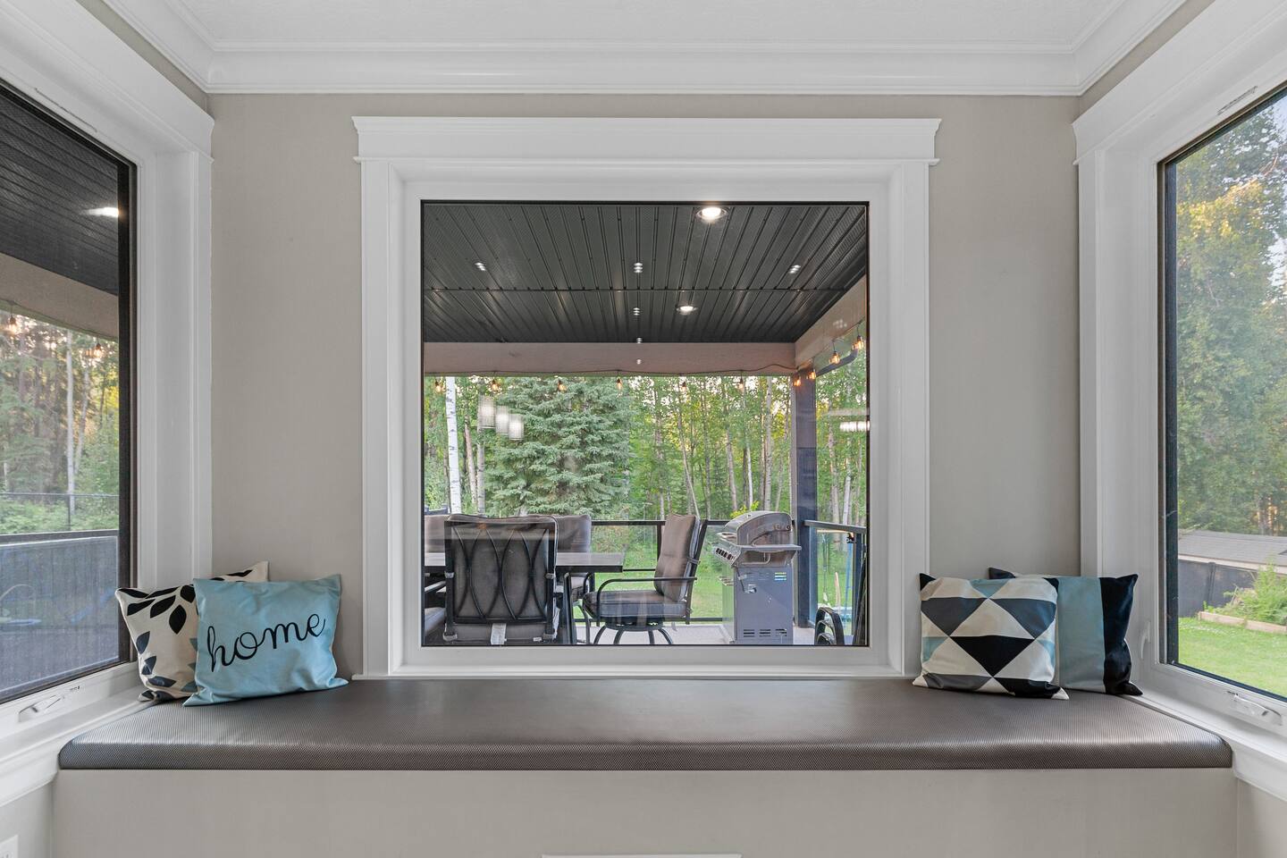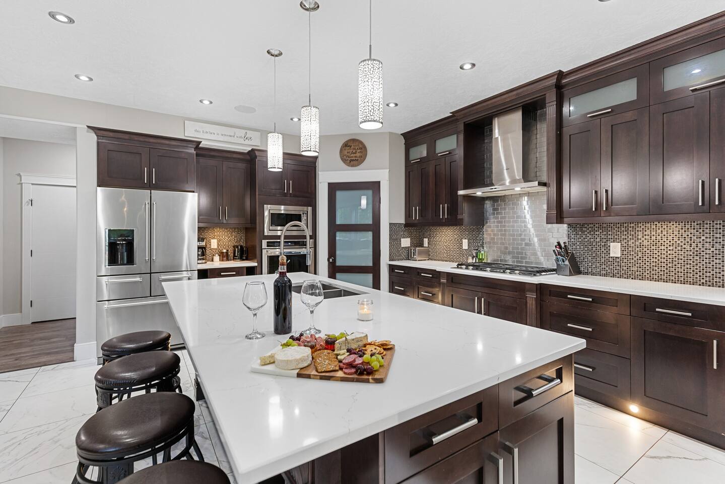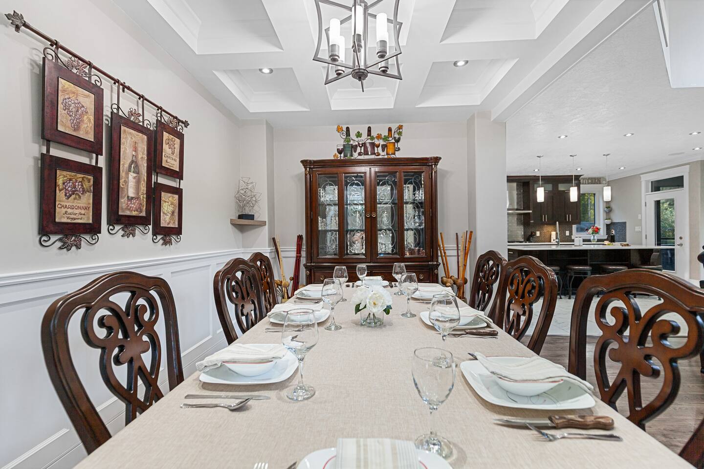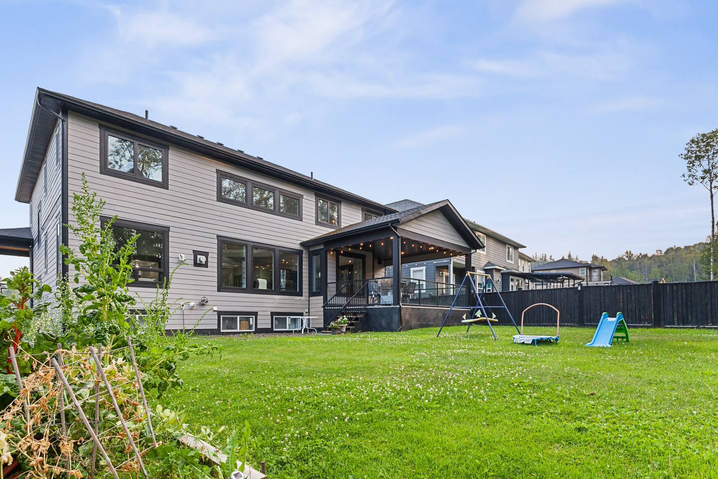 ✨ Key Features ☀Sleeps 10 in comfort: 1 King, 3 Queens, 2 Twins ☀4 bathrooms: Includes a spa-inspired master bath with steam shower, body jets, deep stone-framed soaker tub, and dual vanities ☀Chef’s kitchen: Gas range, double ovens, large quartz island, and formal dining for 11 ☀Cozy living room: Floor-to-ceiling stone fireplace, leather sofas, 65” Smart TV, and board games ☀Dedicated office + high-speed Wi-Fi: Ideal for remote work and extended stays ☀Ample parking: Private driveway for 3 vehicles plus street parking ☀Massive backyard: Fenced, private, with BBQ, fire pit, and forest views 🛏 Bedrooms Primary Suite King bed with plush linens under a tray ceiling with accent lighting and blackout curtains. Enjoy a walk-in closet and a spa-like en suite bath for the ultimate retreat. Second Bedroom Queen bed with crisp bedding, soft lighting, blackout blinds, and chic decor — a peaceful hideaway. Third & Fourth Bedrooms Inviting queen setups with full storage and plenty of natural light. Fifth Bedroom Two twin beds — perfect for kids, teens, or additional guests. 🛁 Bathrooms Indulge in a luxury bathing experience: Rainfall walk-in shower with river rock floor, body sprays, steam function, and built-in bench Deep soaker tub with stone surround in the master Dual vanities with plush towels and eco-friendly toiletries Stylish powder room with vessel sink and gold hardware 🍽 Kitchen & Dining Chef’s Kitchen Gas stovetop, double wall ovens, large quartz island, full cookware set, and coffee bar with drip coffee. Dining Area Formal seating for 11 under a chandelier and coffered ceiling — perfect for family feasts or holiday meals. 🛋 Living Spaces Relax in the cozy yet elegant living room: Floor-to-ceiling stone fireplace Massive leather sofas and soft throws 65” Smart TV Board games for family fun 💼 Workspace Dedicated home office with ergonomic desk, bright lighting, and high-speed internet — ideal for business travelers and remote work. 🌲 Outdoor Space Private fenced yard with seating area, fire table, BBQ, and a fire pit — all surrounded by trees for a secluded, serene feel. 📍 Location Highlights Downtown Prince George – 10 min Restaurants & cafés – 7 min UHNBC – 12 min Shopping & entertainment – 8–10 min Trails & parks – 5 min YXS Airport – 15–17 min